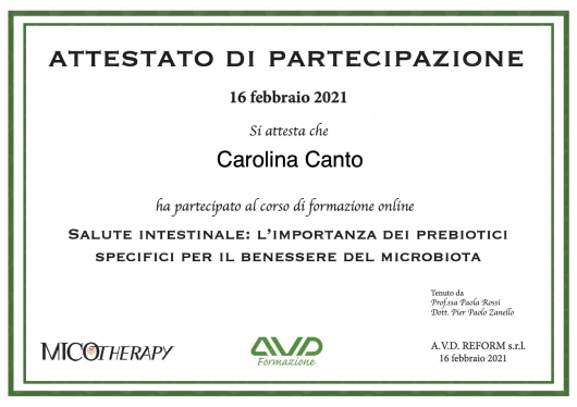 Ciao, sono Carolina Canto, biologo nutrizionista promuovo la salute e il benessere attraverso un’alimentazione consapevole, scientifica e personalizzata.